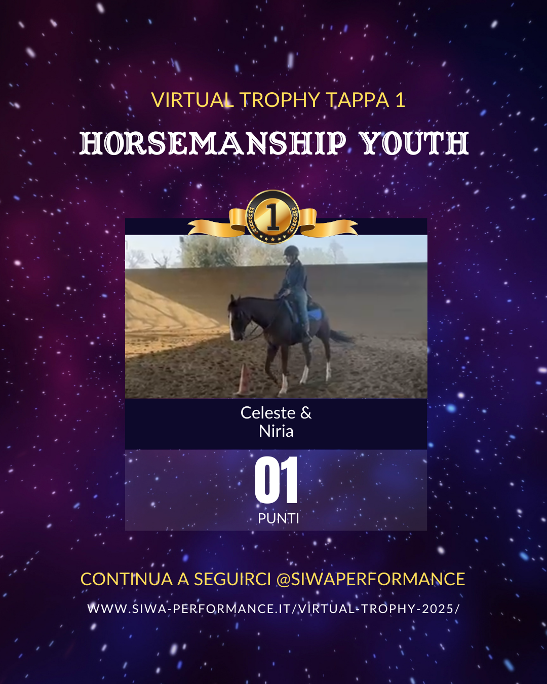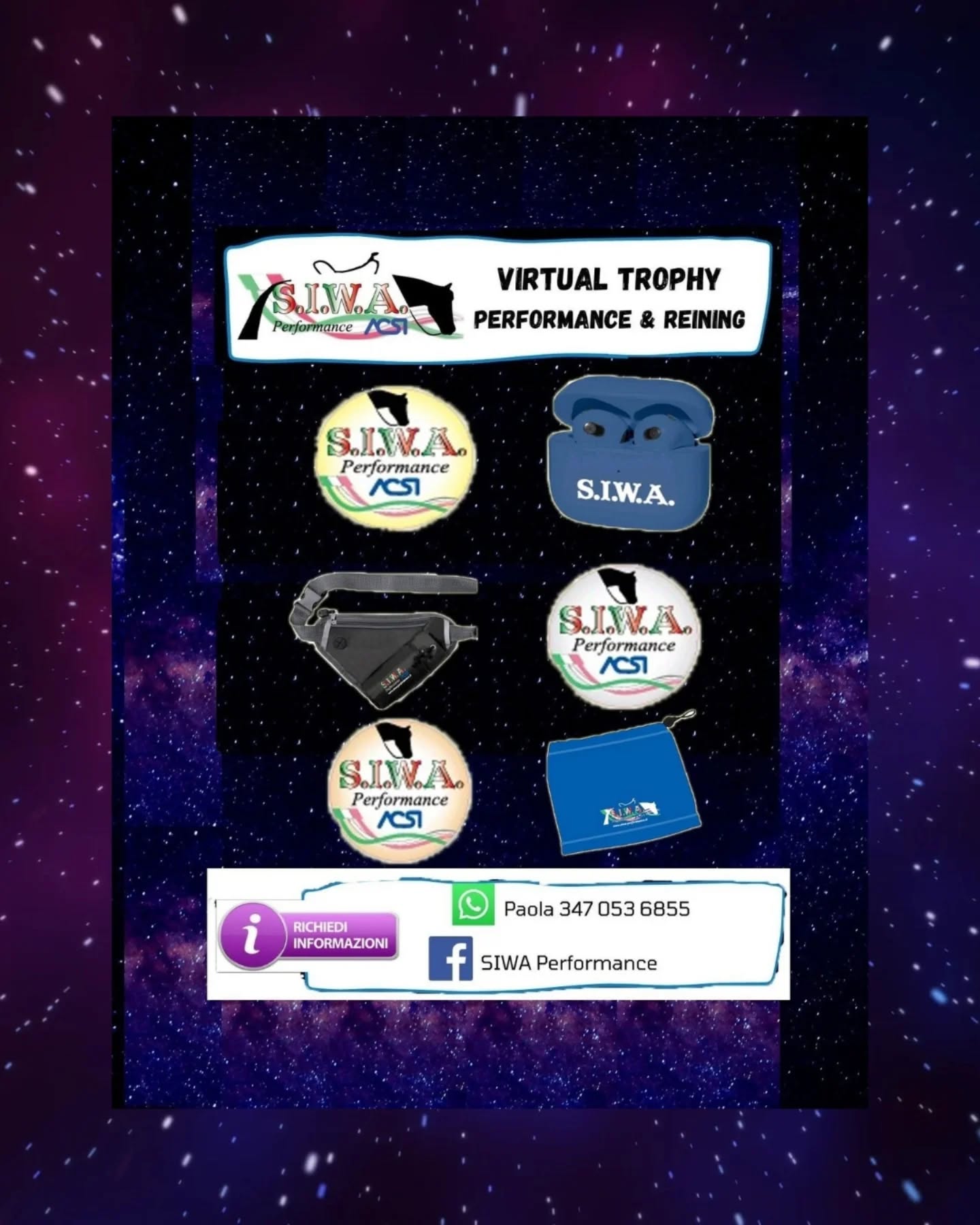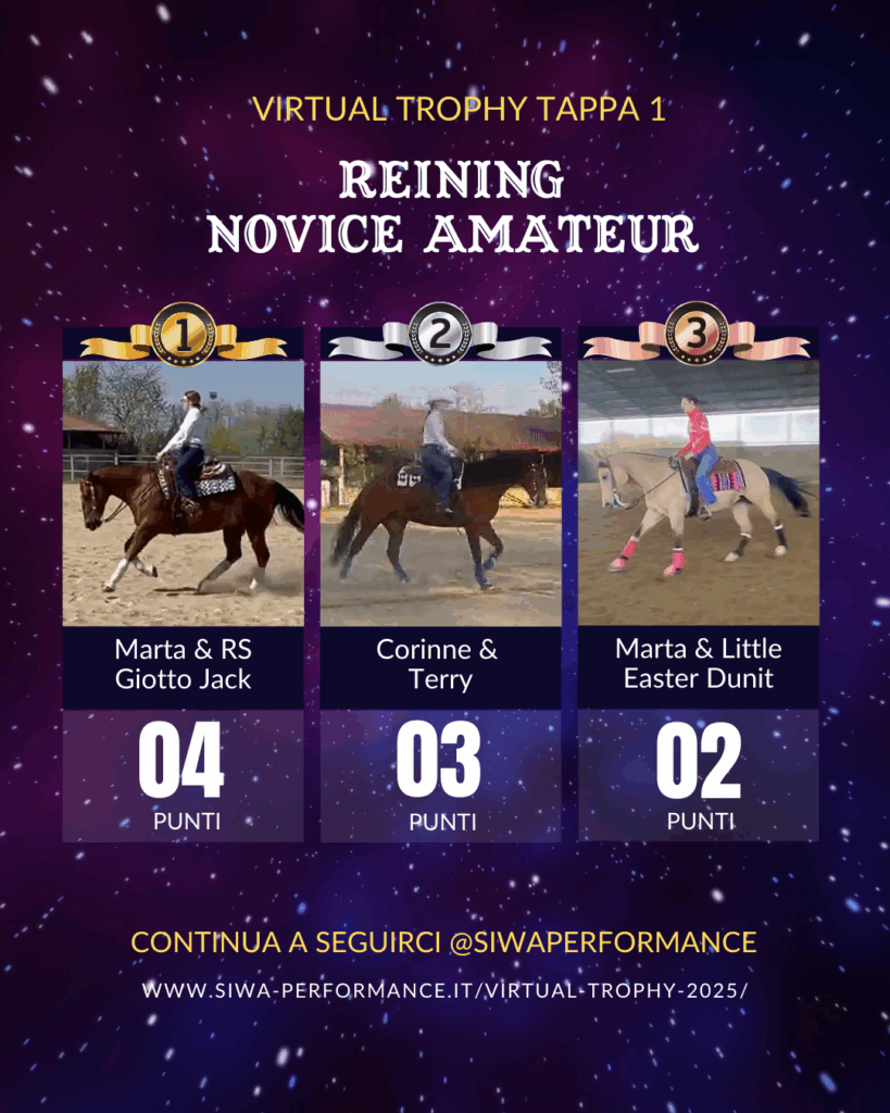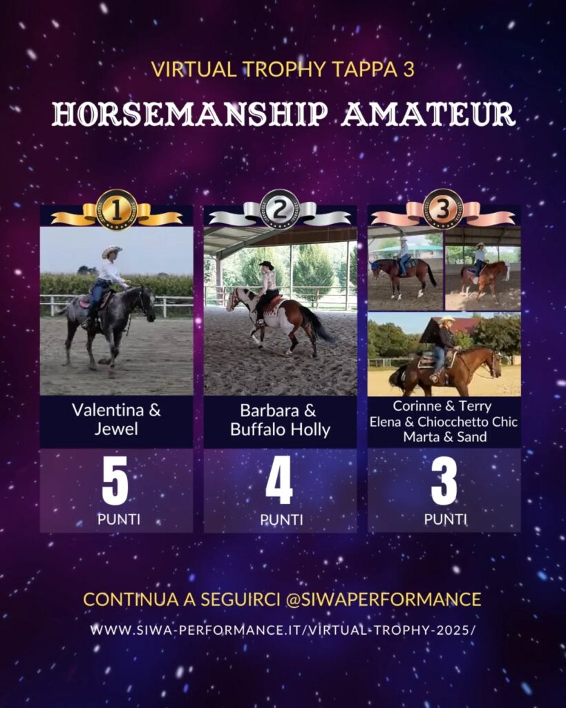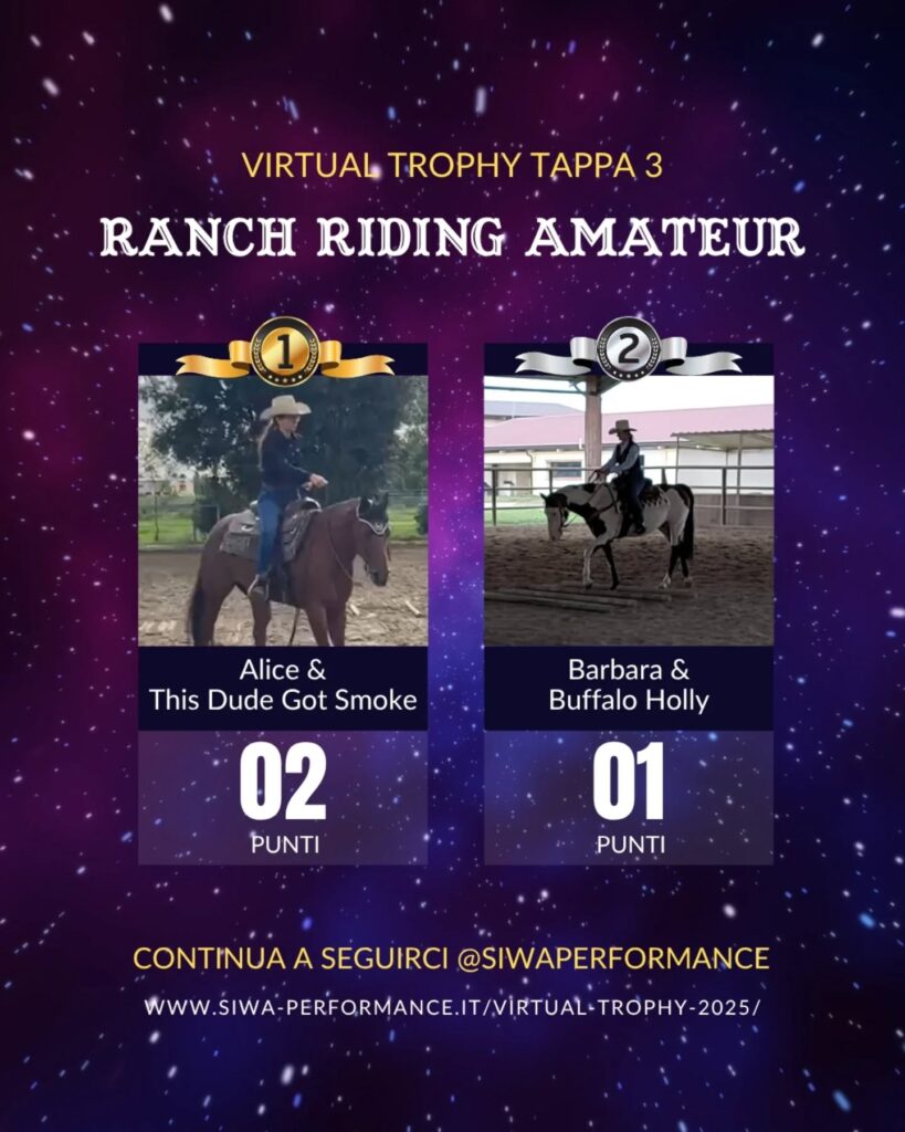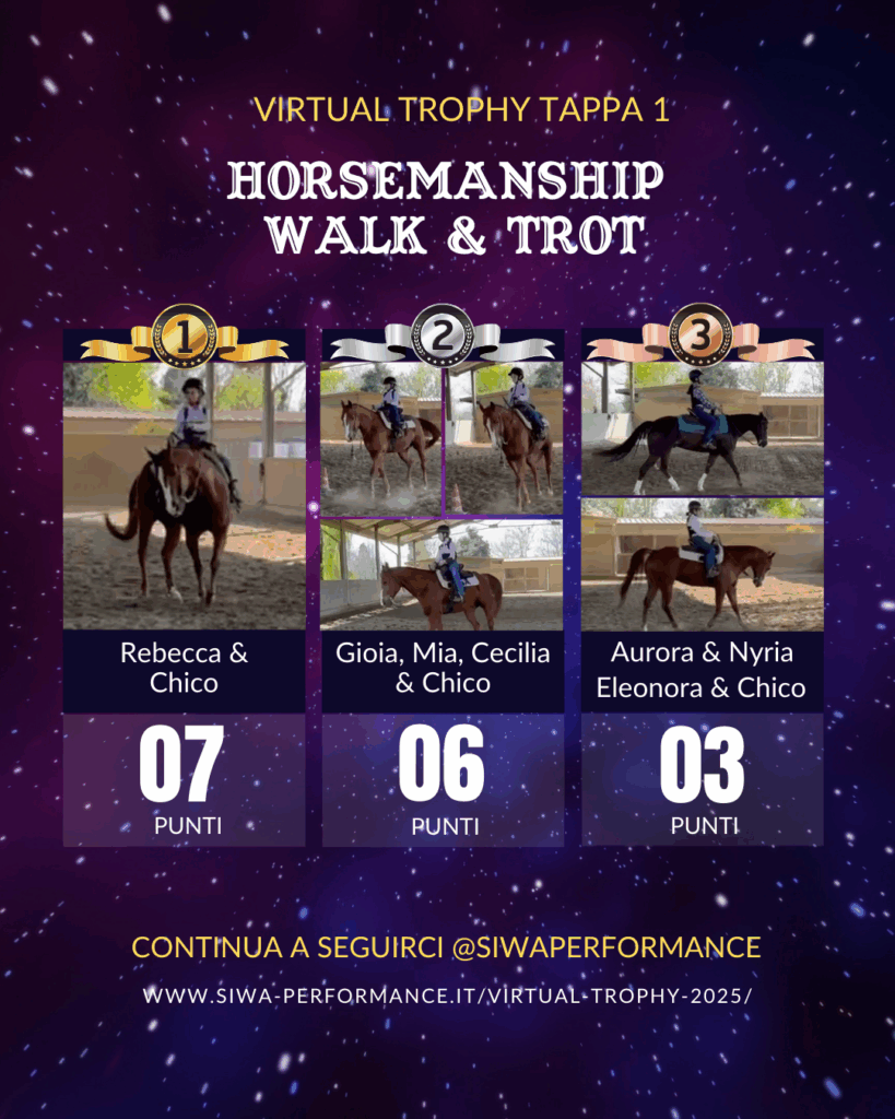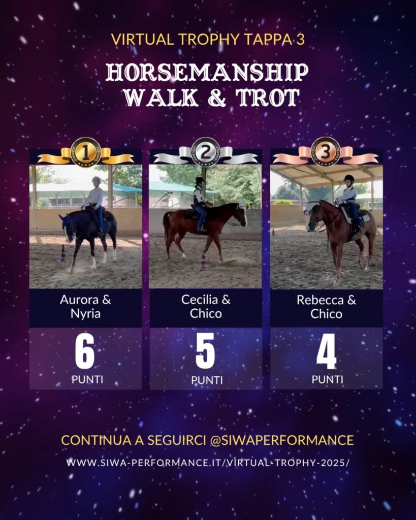Virtual Trophy Siwa, l’esperienza di gare online, che nasce con lo scopo di dare a tutti i cavalieri e a cavalli di tutte le razze la possibilità di poter provare le discipline della Performance anche da casa! Si tratta di gare virtuali, ti basterà filmare la tua performance in base ai criteri delineati, inviare il tuo video e i nostri giudici lo giudicheranno secondo il regolamento in vigore. Riceverai le tue scoresheet direttamente sui tuoi dispositivi.