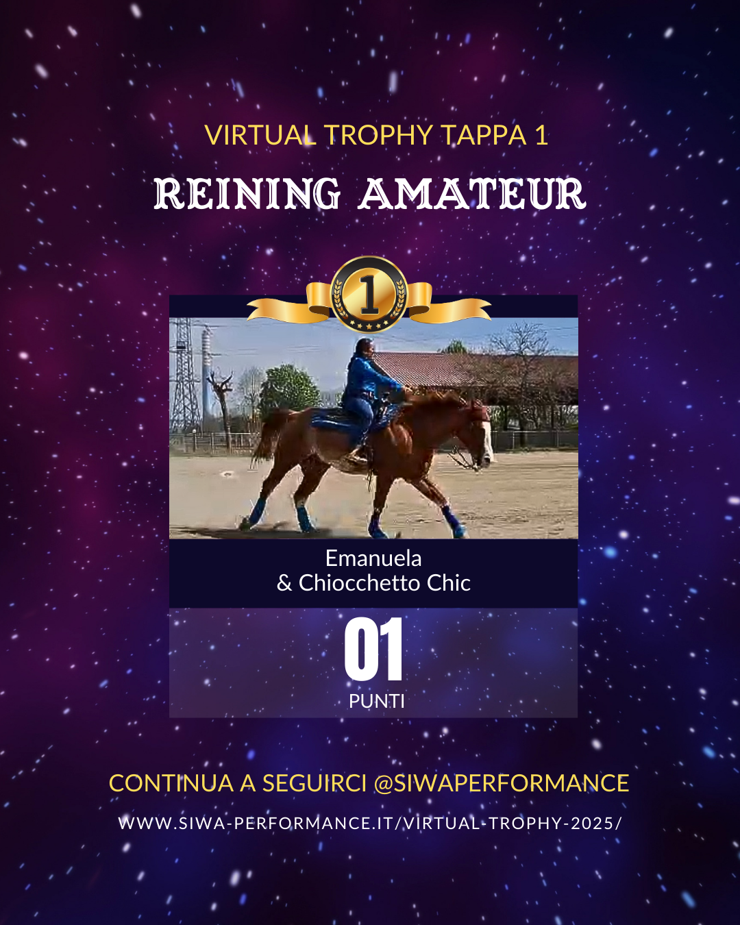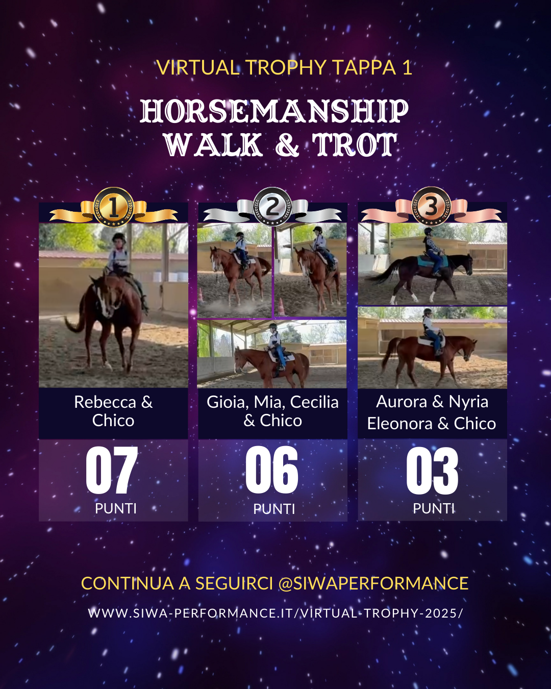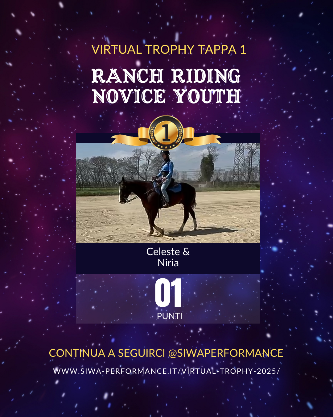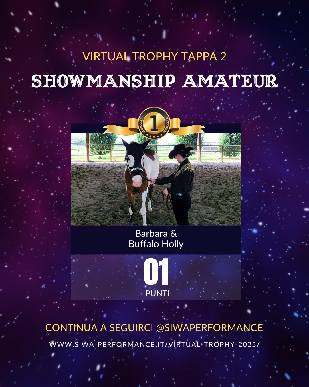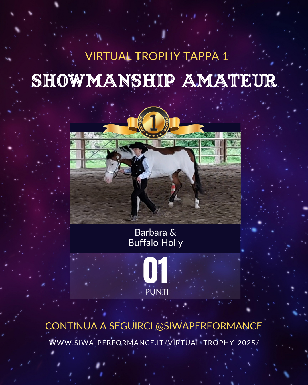 Virtual Trophy Siwa, l’esperienza di gare online, che nasce con lo scopo di dare a tutti i cavalieri e a cavalli di tutte le razze la possibilità di poter provare le discipline della Performance anche da casa! Si tratta di gare virtuali, ti basterà filmare la tua performance in base ai criteri delineati, inviare il tuo video e i nostri giudici lo giudicheranno secondo il regolamento in vigore. Riceverai le tue scoresheet direttamente sui tuoi dispositivi.