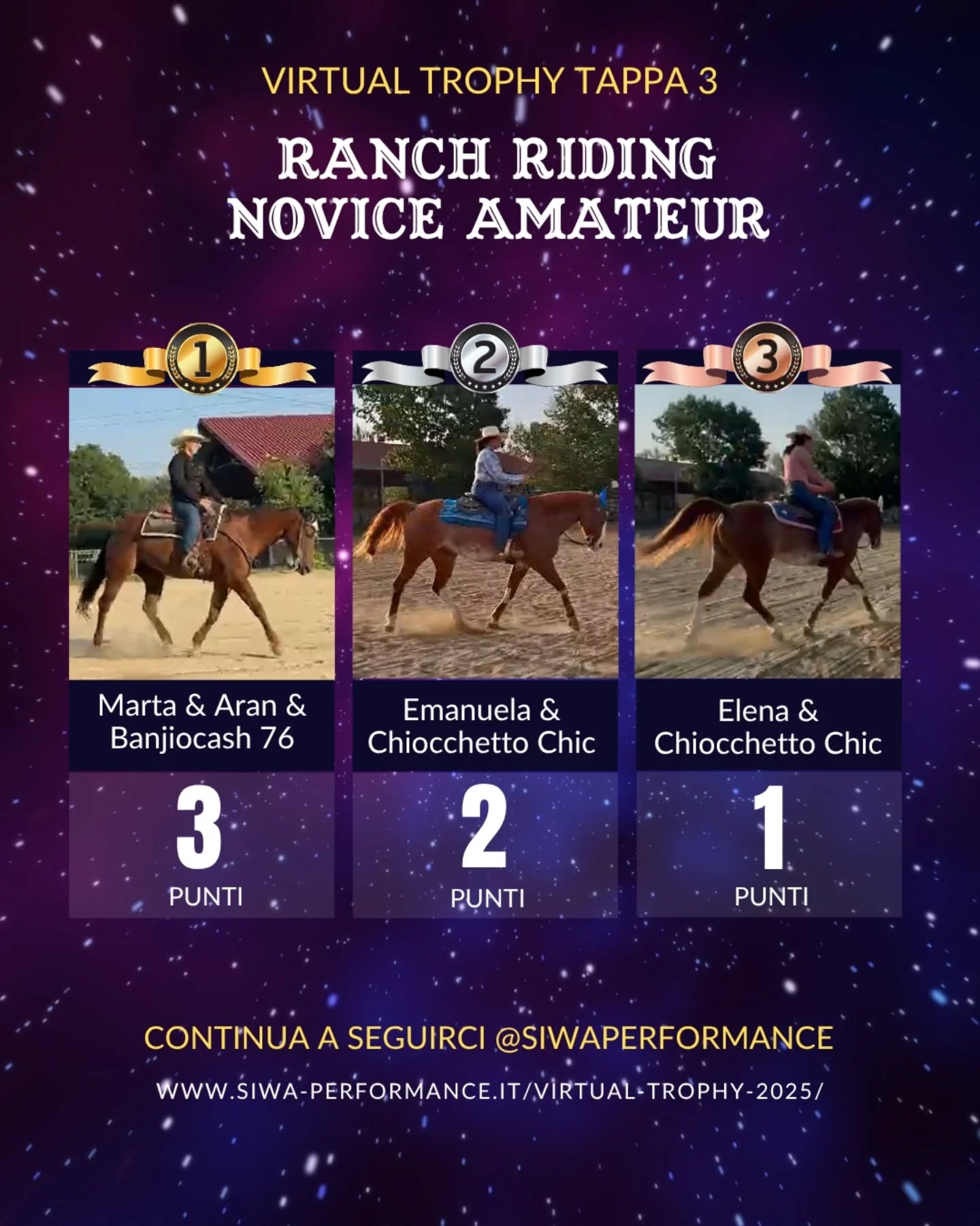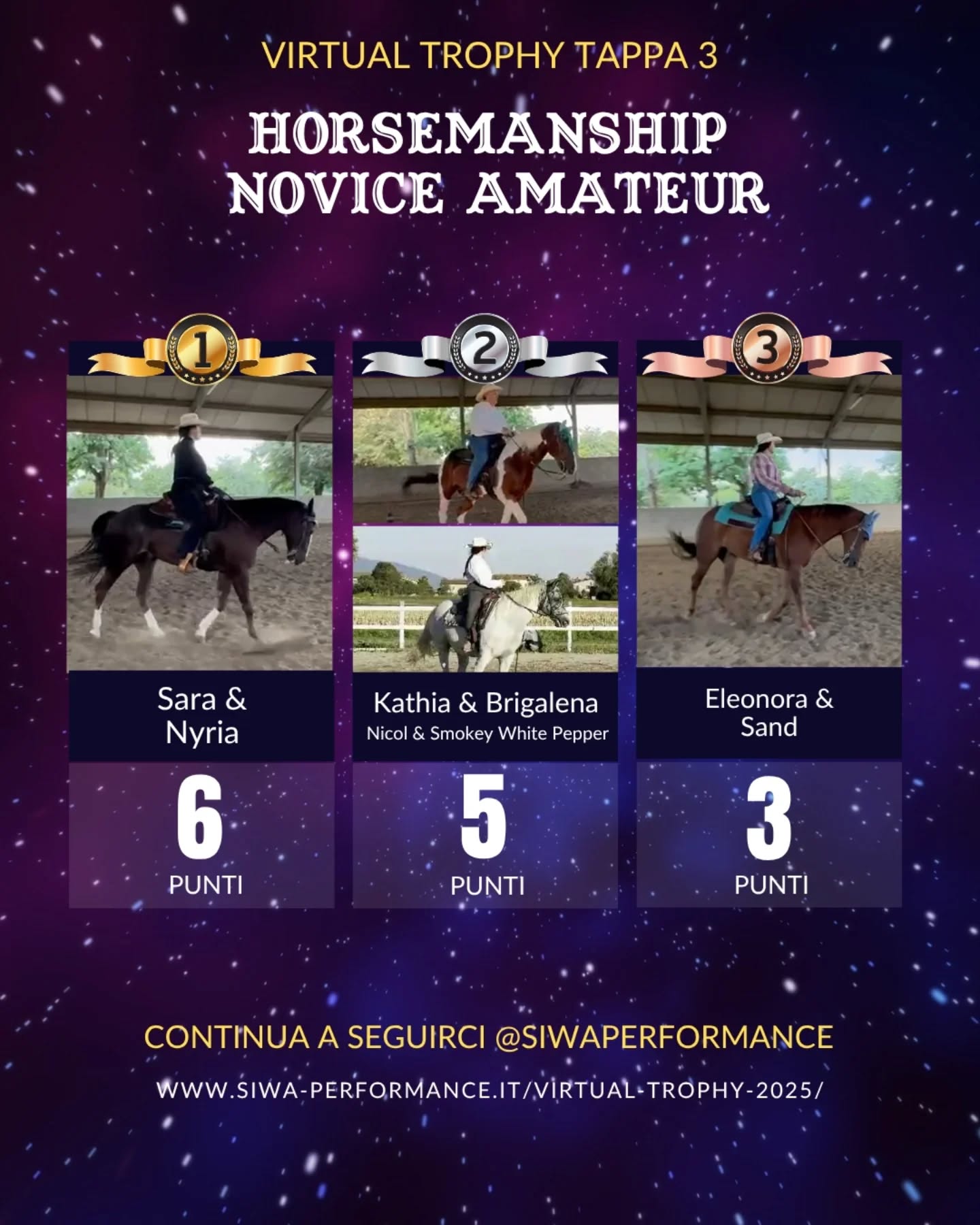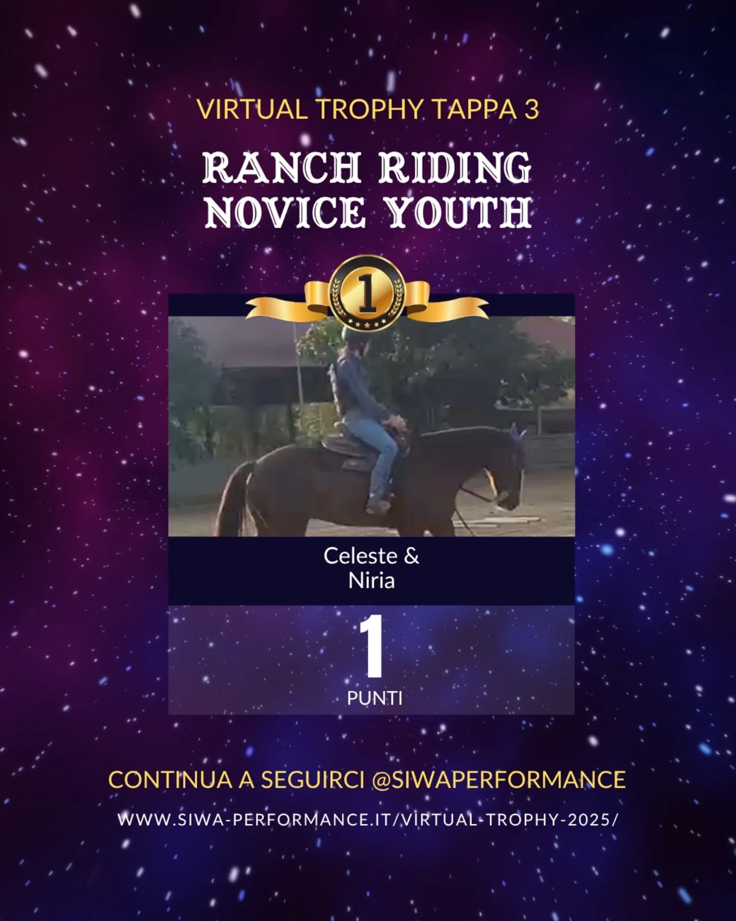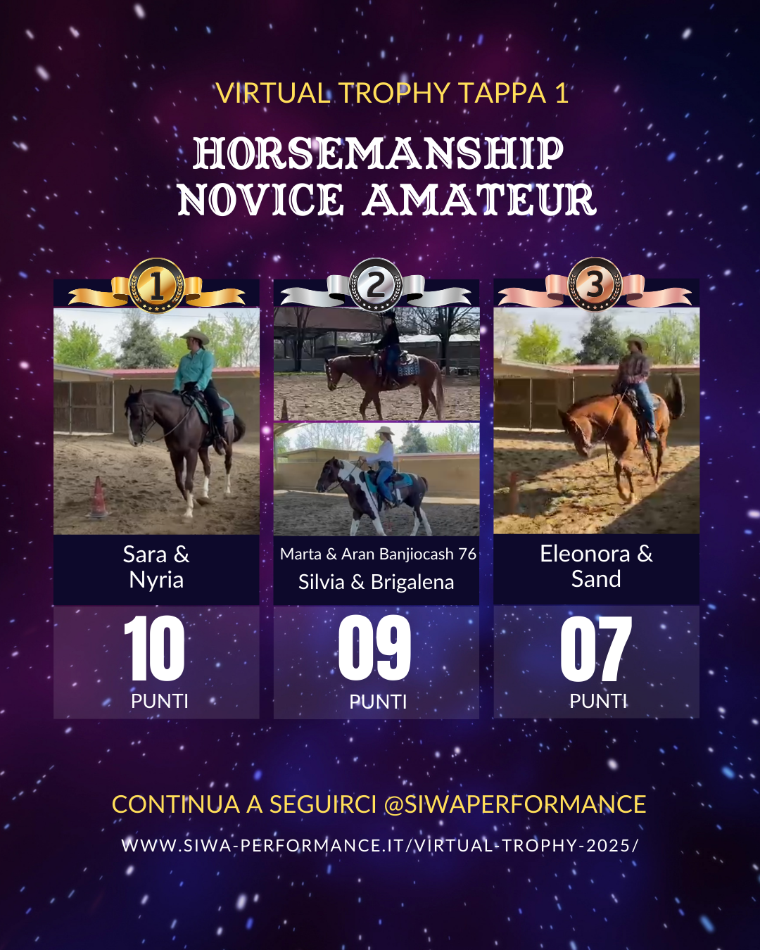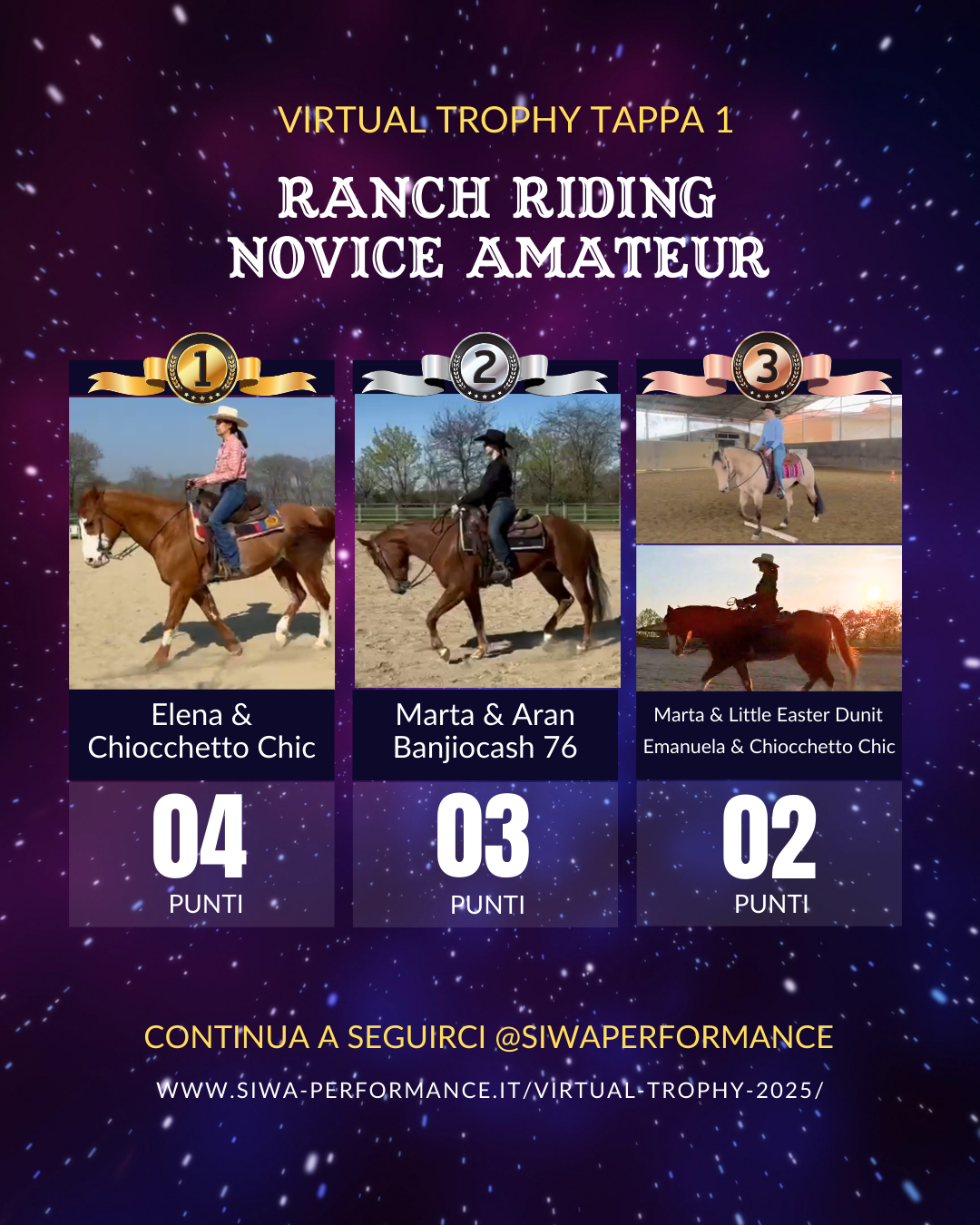 Virtual Trophy Siwa, l’esperienza di gare online, che nasce con lo scopo di dare a tutti i cavalieri e a cavalli di tutte le razze la possibilità di poter provare le discipline della Performance anche da casa! Si tratta di gare virtuali, ti basterà filmare la tua performance in base ai criteri delineati, inviare il tuo video e i nostri giudici lo giudicheranno secondo il regolamento in vigore. Riceverai le tue scoresheet direttamente sui tuoi dispositivi.