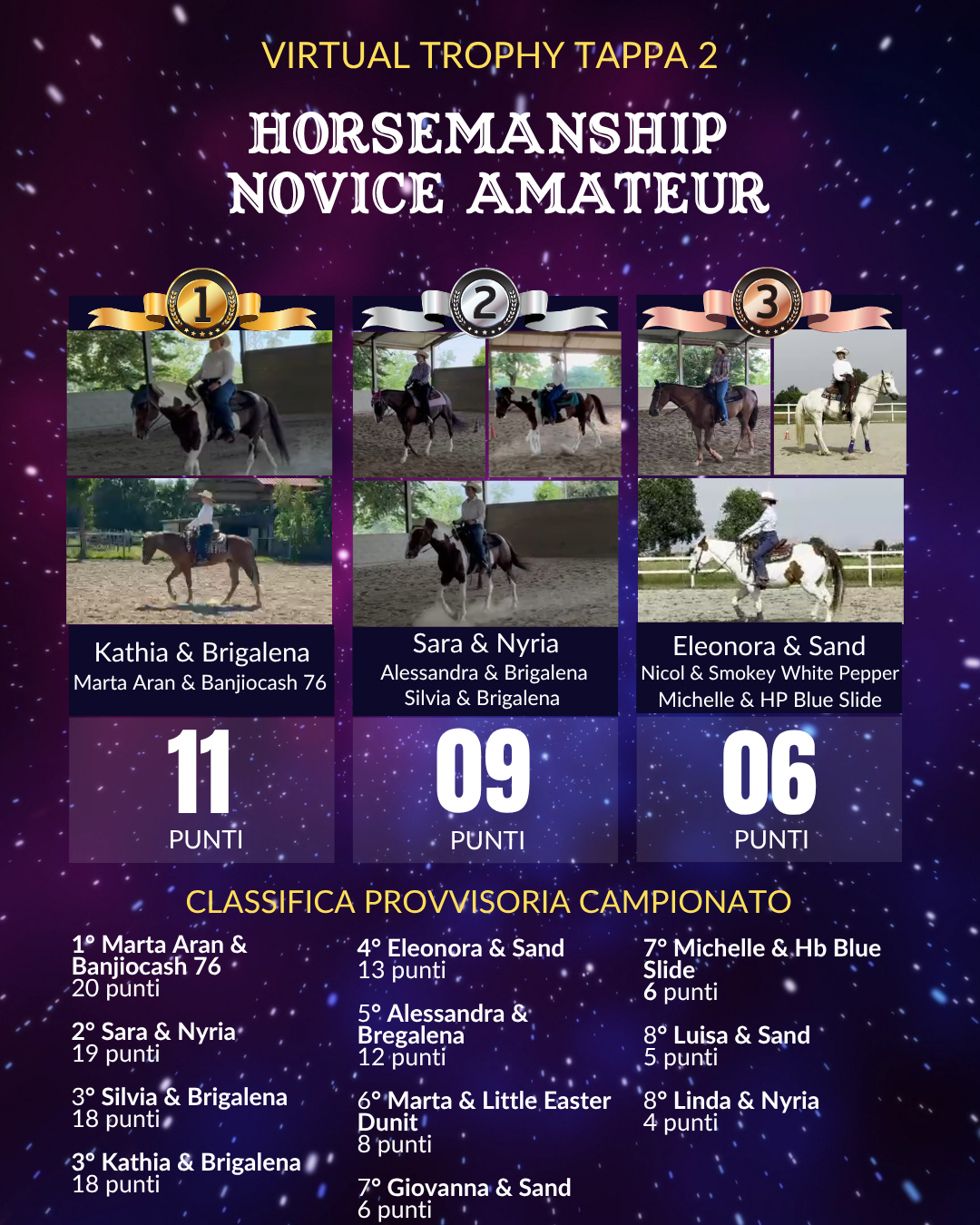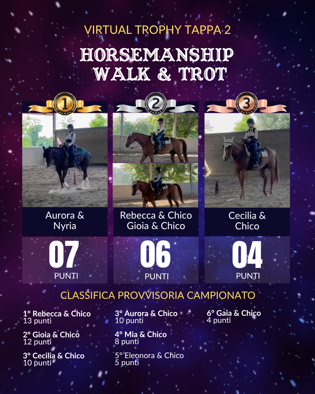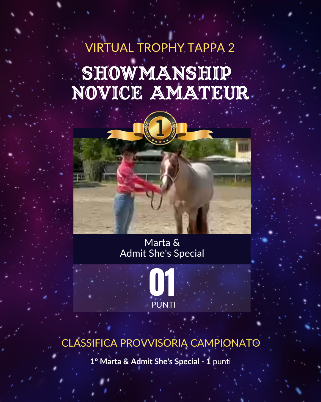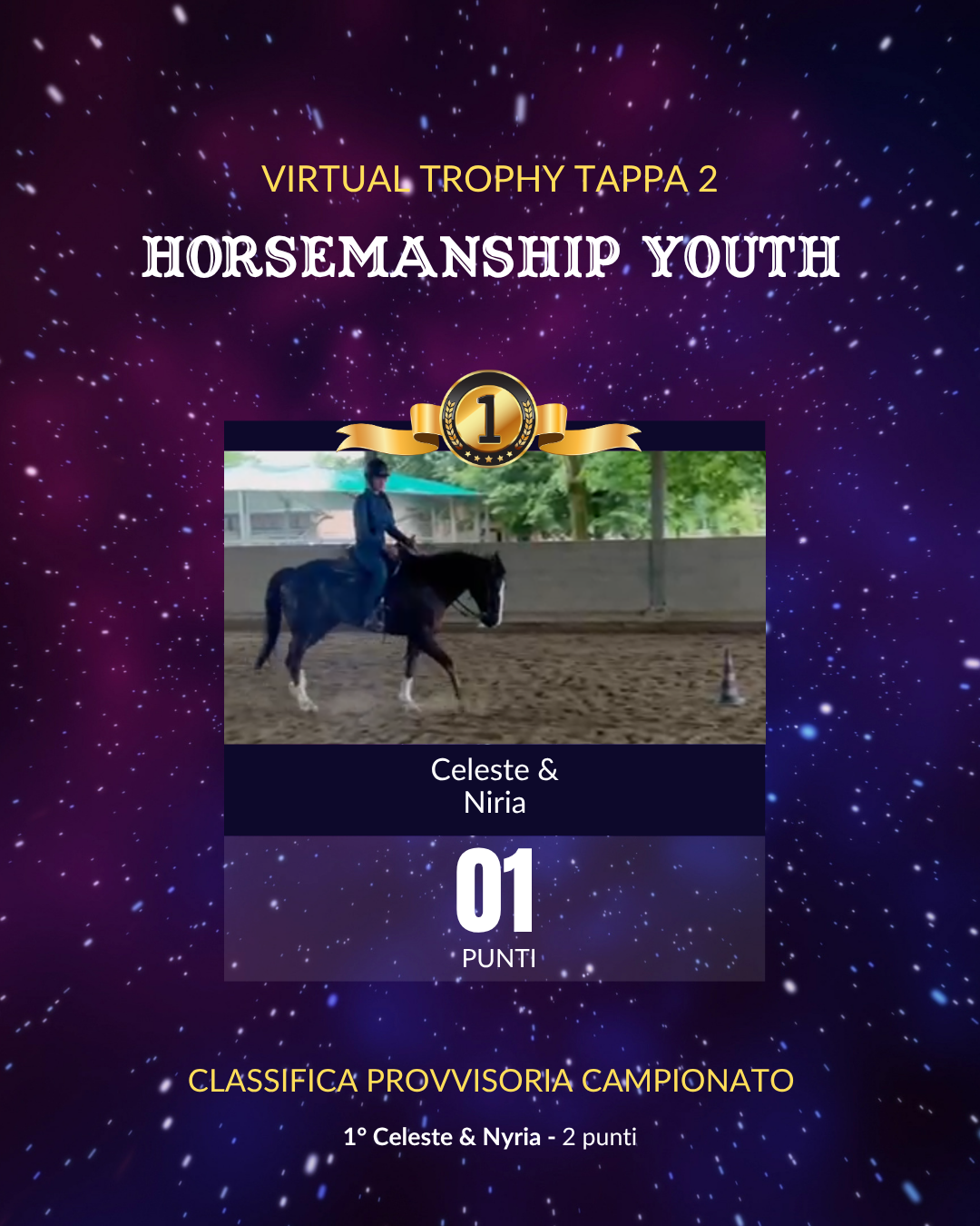 Che tu ti voglia preparare per campionati live, o che desideri semplicemente avere un riscontro su quanto fatto fin ora a casa con il tuo cavallo e il tuo istruttore, il nostro Virtual Trophy è lo strumento perfetto per aiutarti a migliorare le tue prestazioni!