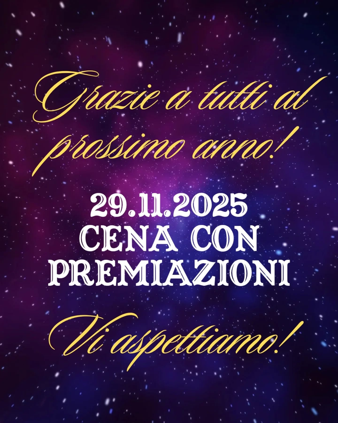 Al termine del campionato, sarà organizzata una cena per premiare i primi tre classificati di ogni categoria e disciplina, nonché tutti i partecipanti.